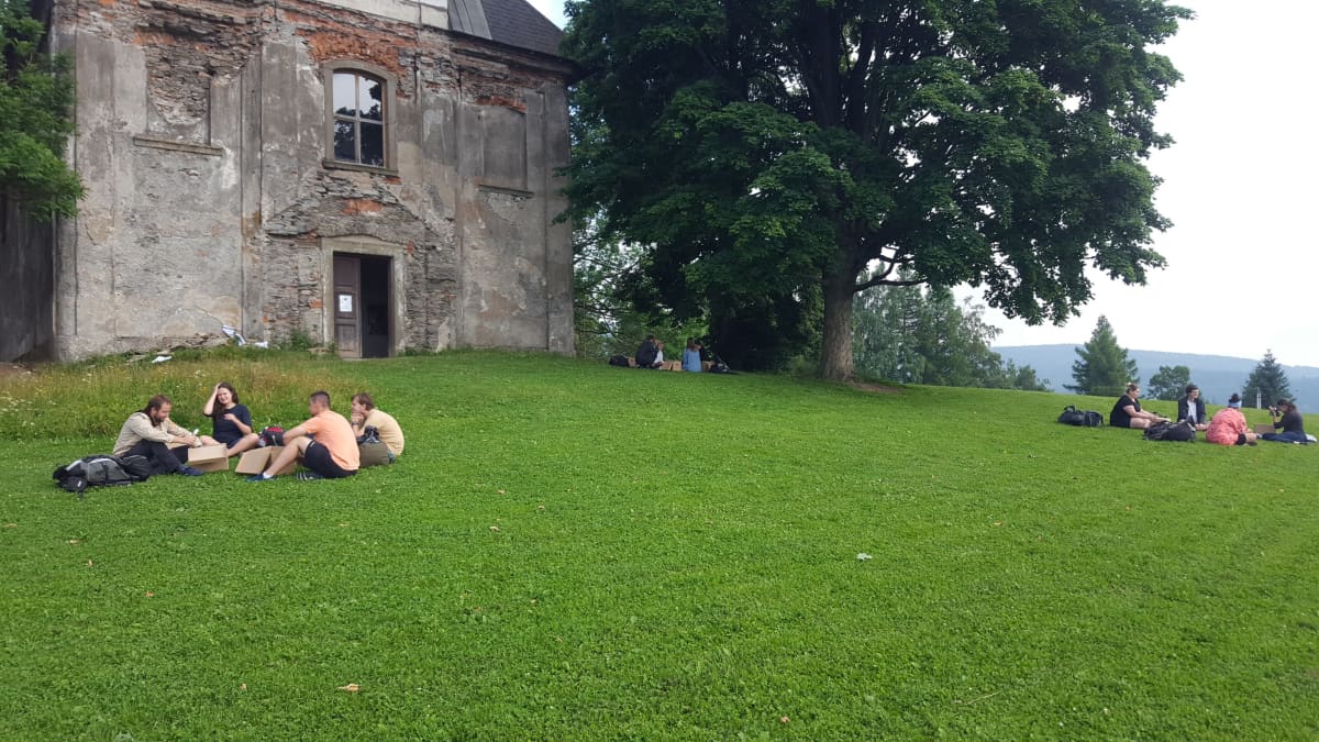 Účastníci se sešli před nádherným kostelem sv. Matouše v Deštné, kde pobyt zahájili zamyšlením o materiálních i nehmotných věcech, které s sebou vláčí zbytečně, a jejich odložením. Další den měla své místo historie klubu a rozhovory s lidmi, kteří byli u jeho začátků, poté se ve skupinkách věnovali postupně zadávaným úkolům, např. jak připravit program táborového dne apod. Součástí výuky byla i teoretická část, která je ovšem vždy doplněná praktickým procvičováním, hrami, aktivitami, zpětným testováním získaných dovedností a na závěr reflexí.